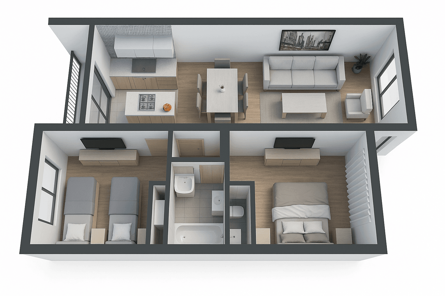 Move from 2D floor plans to real-time 3D space. Our fluid tools follow your workflow: sketch your plan, transition instantly to 3D, and iterate freely. Focus on your spatial ideas, not the software.