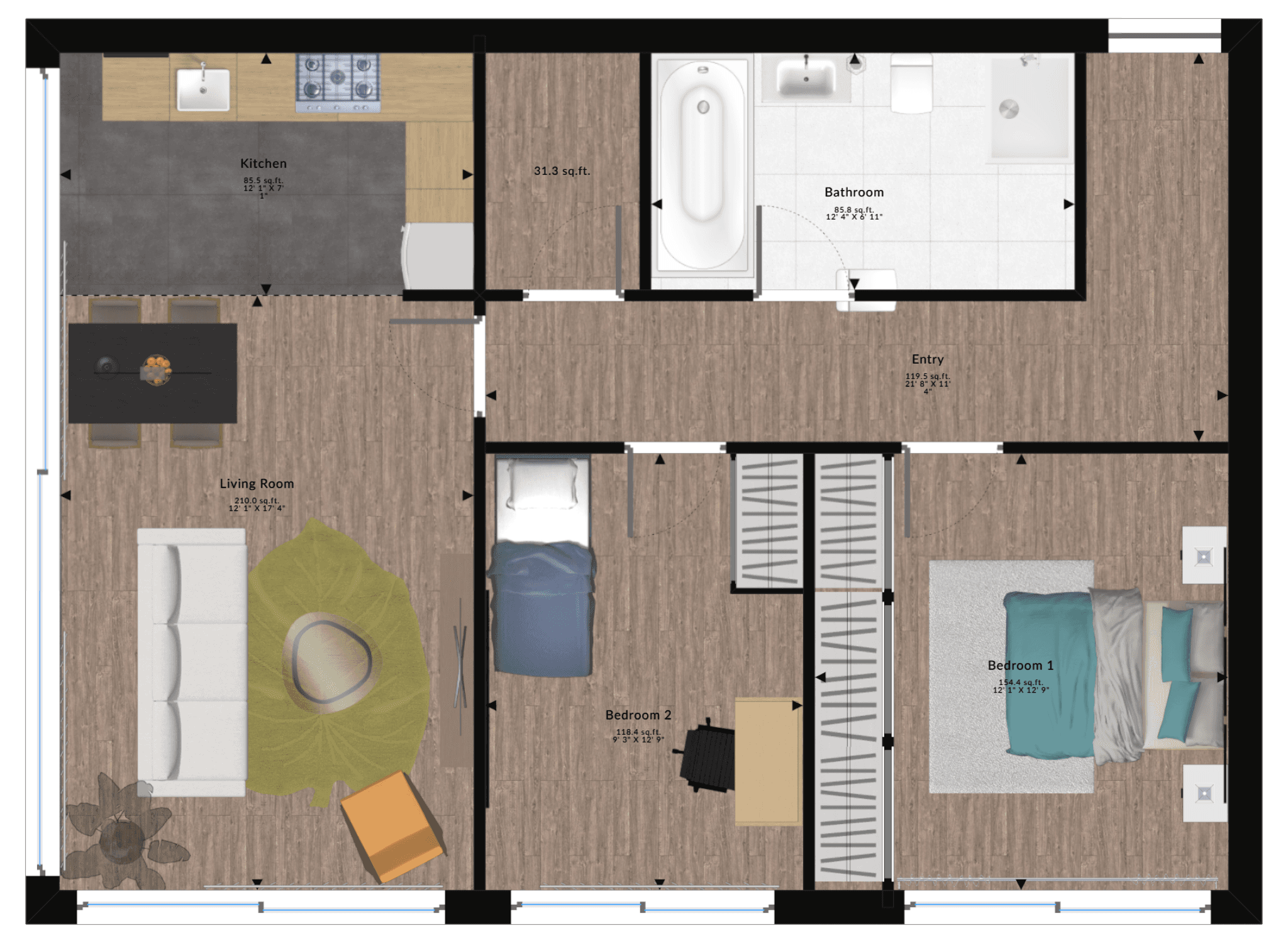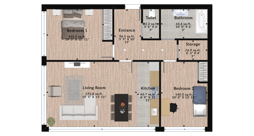 Two-Bedroom Apartment Floor Plans