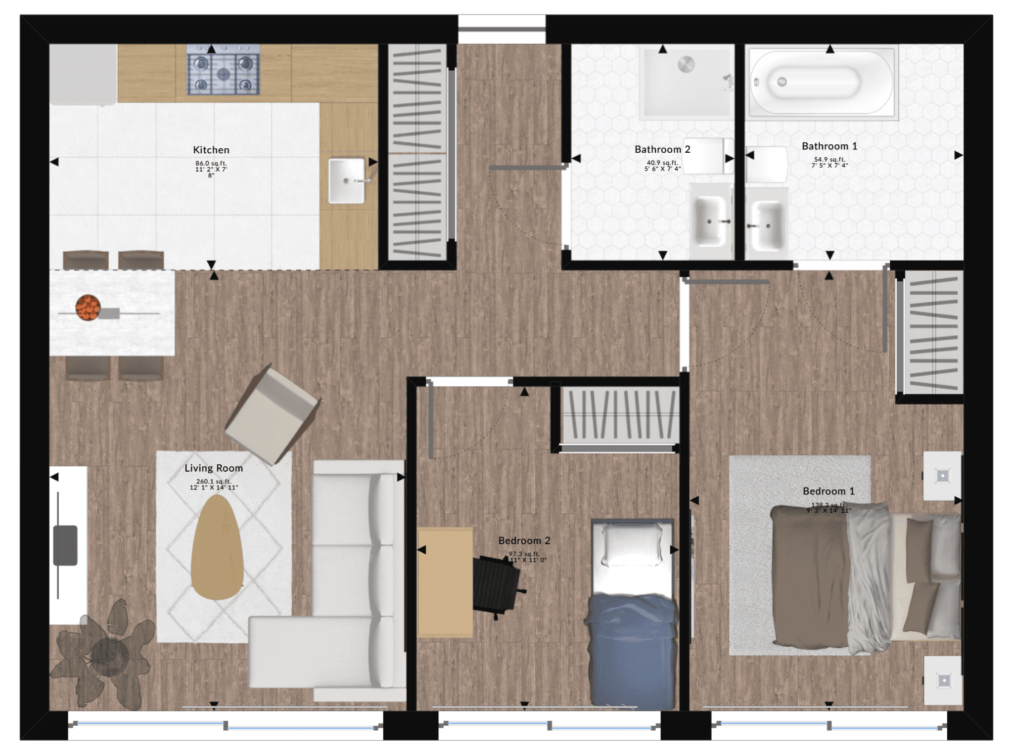 Two-Bedroom Apartment Floor Plans